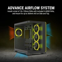 - Exceptional Cooling and Airflow: Equipped with 4 pre-installed ARGB-PWM fans and support for up to a 360mm radiator mount on the top and side, this case ensures optimal airflow and cooling to keep your system running smoothly under pressure.