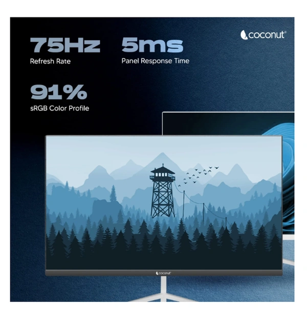 - 75Hz Refresh Rate : Coconut 22" Monitor is equipped with 75hz refresh rate, thus providing a smoother visual experience