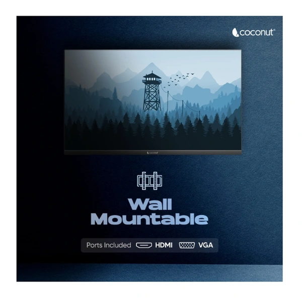 - Versatile Connectivity : Coconut 22inch Monitor is Equipped with HDMI and VGA ports for flexible device compatibility, and wall-mountable for customizable placement options, ensuring convenience and adaptability in setup.