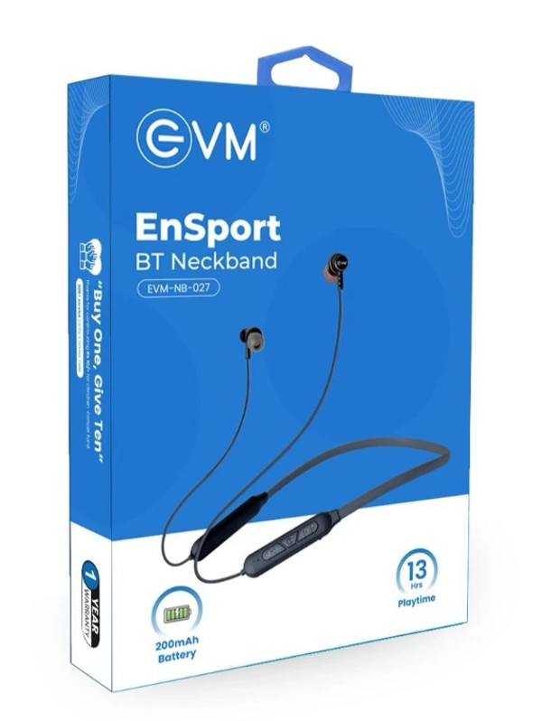 Experience unbeatable sound quality and seamless connectivity with the EVM Bluetooth Neckband Earphone Ensport (NB-027). Designed for comfort and performance, this sleek black neckband is perfect for music enthusiasts, fitness lovers, and professionals on the go. With its lightweight design and advanced Bluetooth technology, it ensures a hassle-free audio experience for every occasion.