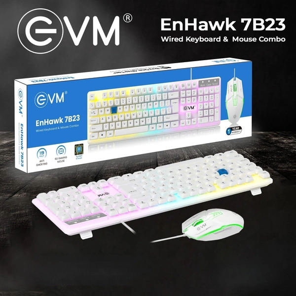 EVM EnHawk Wired Gaming Keyboard & Mouse Combo - RGB Backlit - 6-Button Gaming Mouse - Adjustable DPI (1200-3600) - 1 Year Warranty (EVM-WDKM-315-EnHawk)